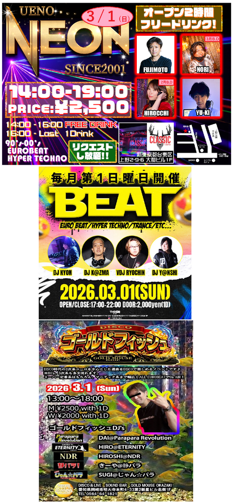 ■NEON~オープン2時間飲み放題! ■MAGICAL RAVE HYPER ■#ロクパラ ■BEAT ■ゴールドフィッシュ ■桃のヨゴレ