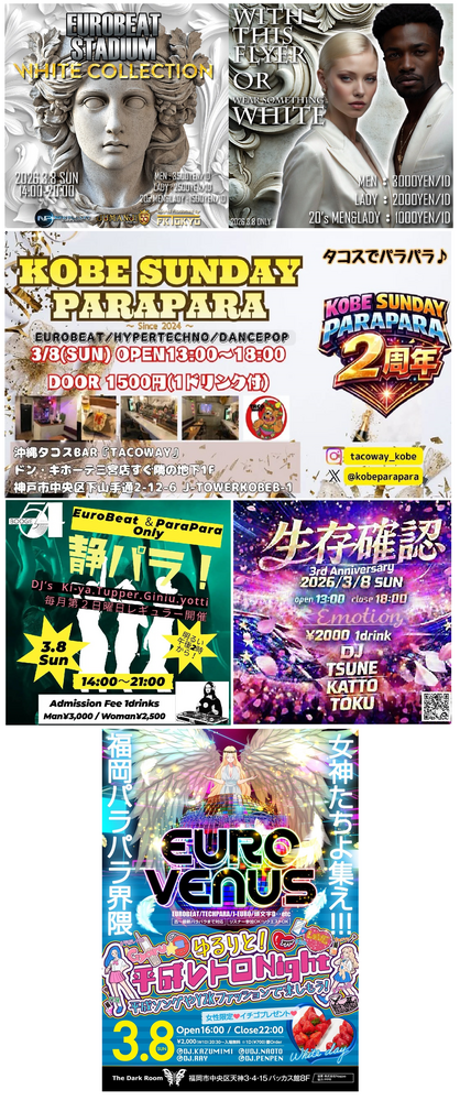 ■EUROBEAT STADIUM ◆D-GENE ■★YOKOHAMA VACATION ■静パラ! ■NDR ■【2周年】KOBE SUNDAY PARAPARA ■HYPER SUNDAY ■【3周年】生存確認 ■EURO VENUS