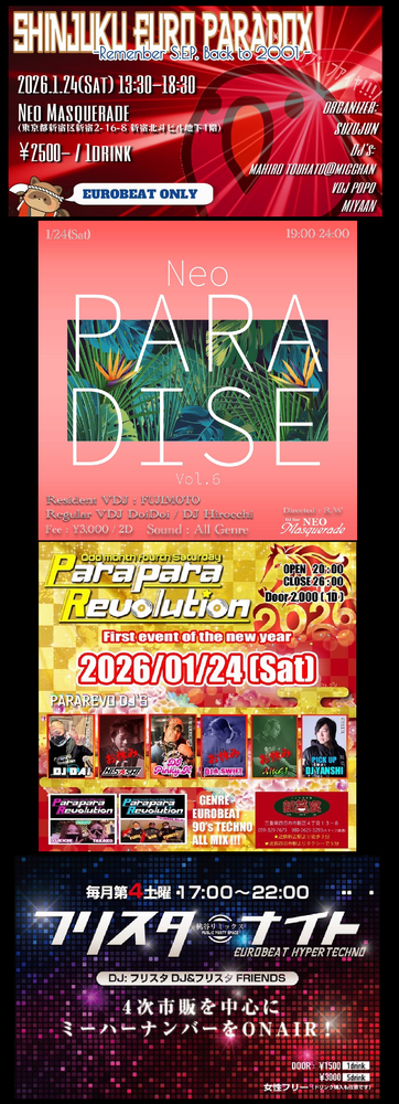 ◆WARABI- NIGHT ■SHINJUKU EURO PARADOX ◆Neo PARADISE ■Parapara Revolution ■フリスタナイト
