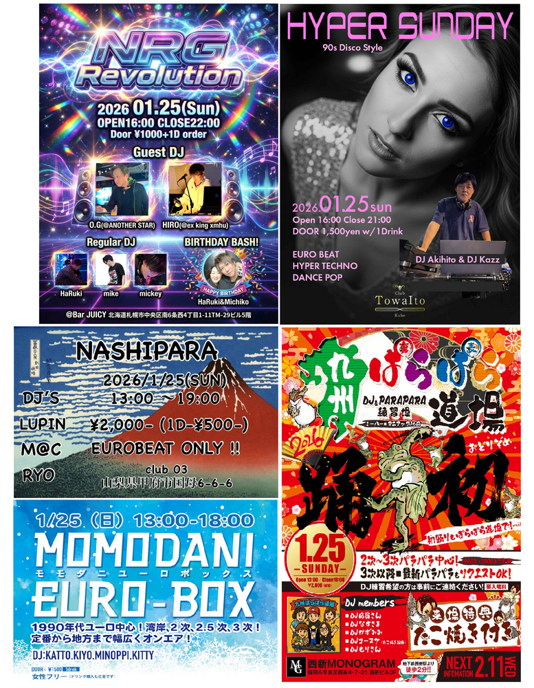■NRG REVOLUTION ■PDS ANNEX ■EURO HEAVEN ◆HAPPY DISCO ■NASHIPARA ■MOMODANI EURO-BOX ■ミナミのパラパラ ■HYPER SUNDAY ■九州ぱらぱら道場